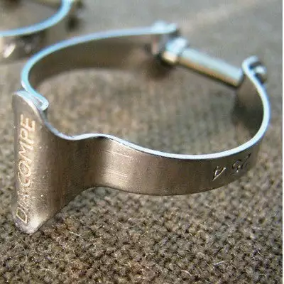 Les attaches Dia-Compe permettent de guider une gaine de vélo près du cadre et bénéficier ainsi d’une installation nette. Elles sont prévues pour se monter sur un cadre rond ; une petite vis est utile au règlage du collier. De coloris argent, les fixations sont fabriquées en acier inoxydable, ce qui leur confèrent à la fois une bonne résistance et un look rétro.