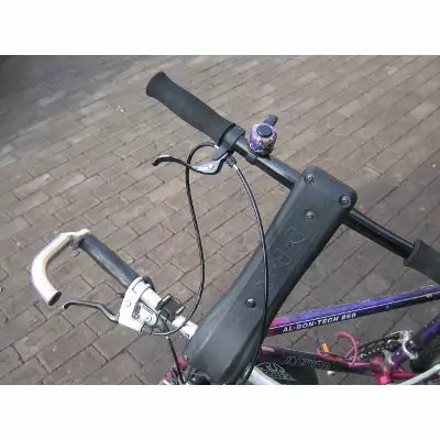 La position relevée du rehausseur de guidon D-bar s’adopte généralement sur un terrain relativement facile et plat, où les freins ne sont pas forcément indispensables. Néanmoins, pour ceux que cela rassure, il est possible de rajouter une poignée de frein sur le D-Bar qui s’adapte au frein de type mécanique comme sur l’image plus haut. La poignée de frein s’adapte au système de freinage par tirage à câble.