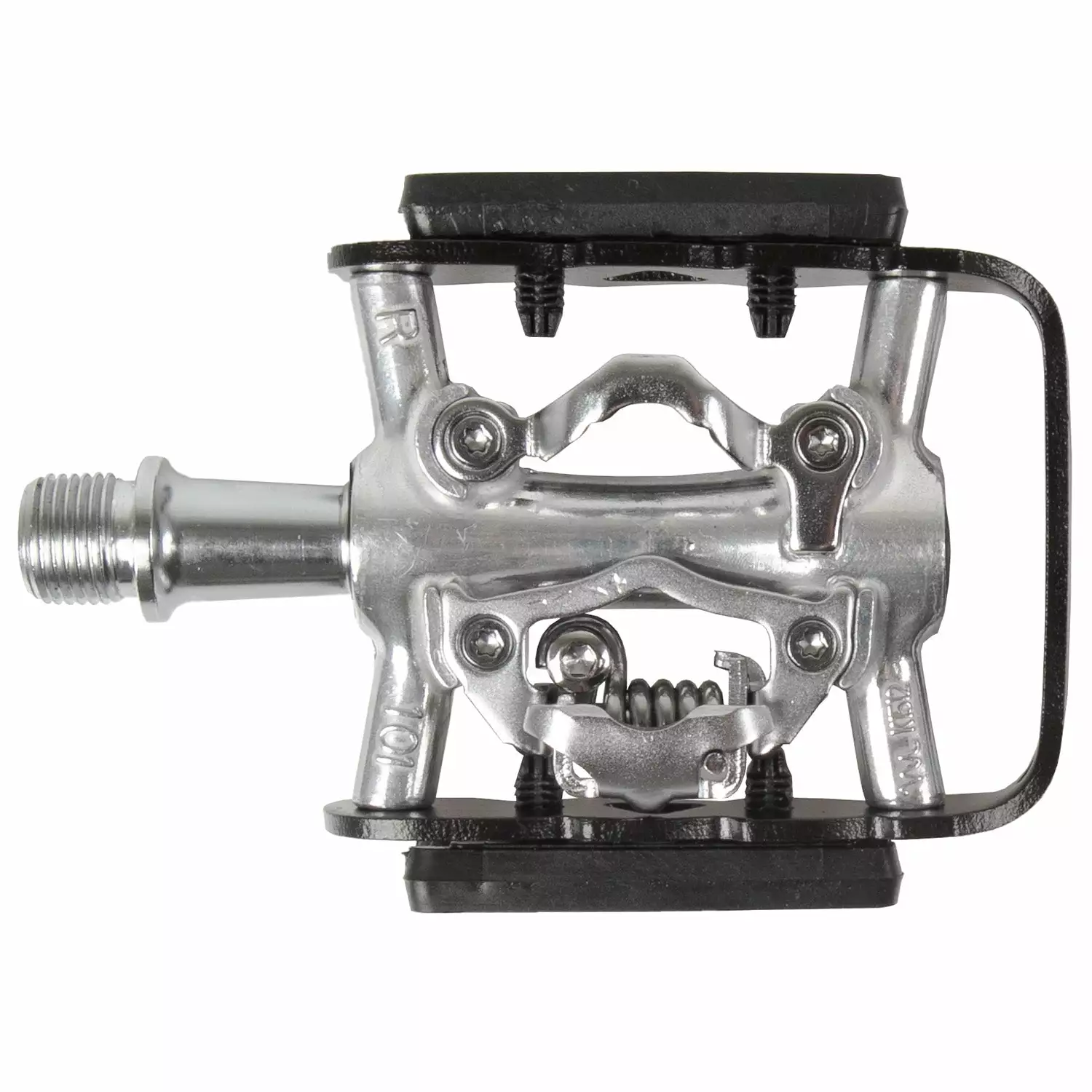 Paire de pédales vélo double côté compatible SPD argent et noir