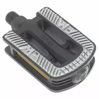 Pesant seulement 248 g, ces 2 pédales sont composées d’un corps en plastique et d’un axe en acier. Elles sont munies d’une gomme antidérapante pour un bon maintien du pied. Équipées de réflecteurs, elles permettent de rendre le vélo de l’enfant visible même par faible luminosité.