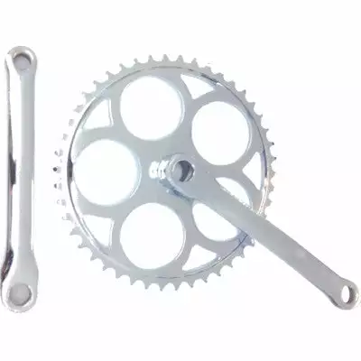 Pour donner une touche vintage à votre vélo ou restaurer votre ancien vélo ce pédalier est idéal. En effet ce dernier se monte à l’aide de clavettes, système utilisé sur les vieux vélos. Ce pédalier ne comprend qu’un plateau de 46 dents. Ce pédalier de vélo monovitesse est livré avec ses deux manivelles de 170 mm. L’ensemble du set est composé en acier.