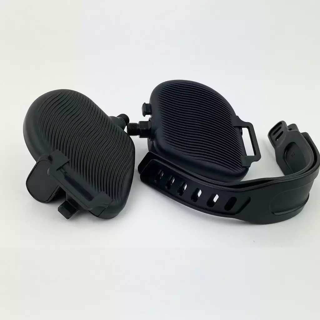 Cette paire de pedale velo appartement en résine est conçue pour les vélos d’appartement. Ces pédales disposent de sangles réglables pour maintenir le pied stable et offrir une meilleure efficacité de pédalage. Elles sont proposées en deux diamètres de filetage : 1/2″ et 9/16″.