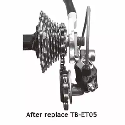 - Placer votre patte de dérailleur de secours contre votre dérailleur arrière et visser la