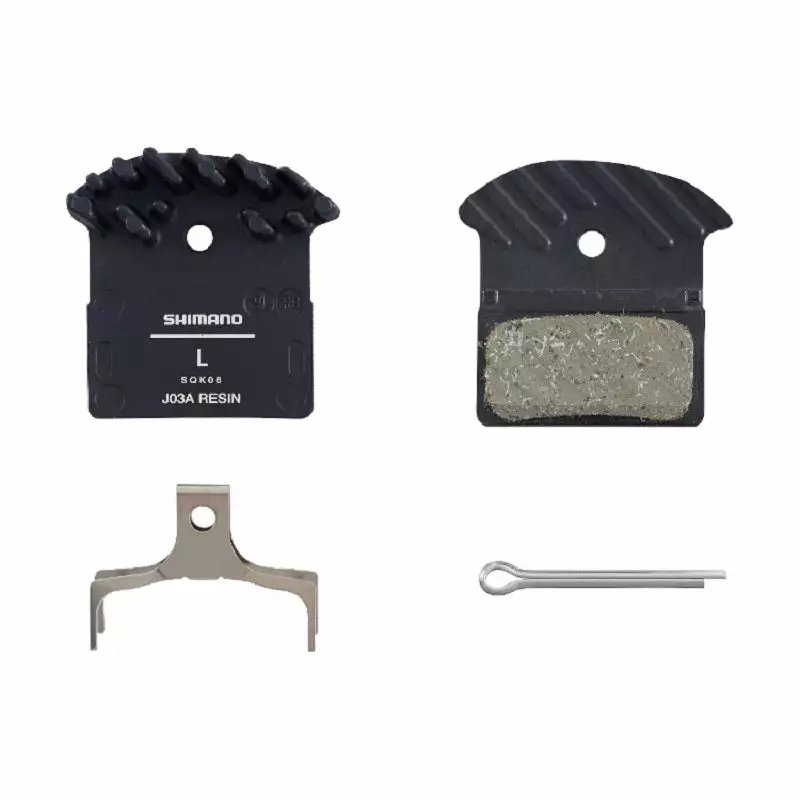 Le modèle Shimano J03A avec garniture organique et support aluminium.