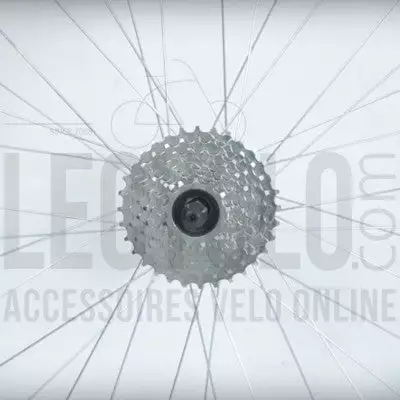 Cette roue libre à visser possède 8 vitesses. Le nombre de dent des pignons va de 13 à 32. Elle est de couleur argent métal.