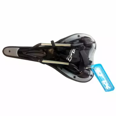 La selle Globetrotter, fabriquée en élastomère, avec son rembourrage en gel permet une meilleure répartition du poids et absorbe les vibrations. Des renforts en caoutchouc situés aux points de compression, renforcent les propriétés amortissantes de la selle.
